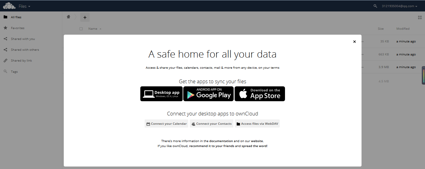 2. Visit the URL of OwnCloud, log in to the backend, and begin using it.